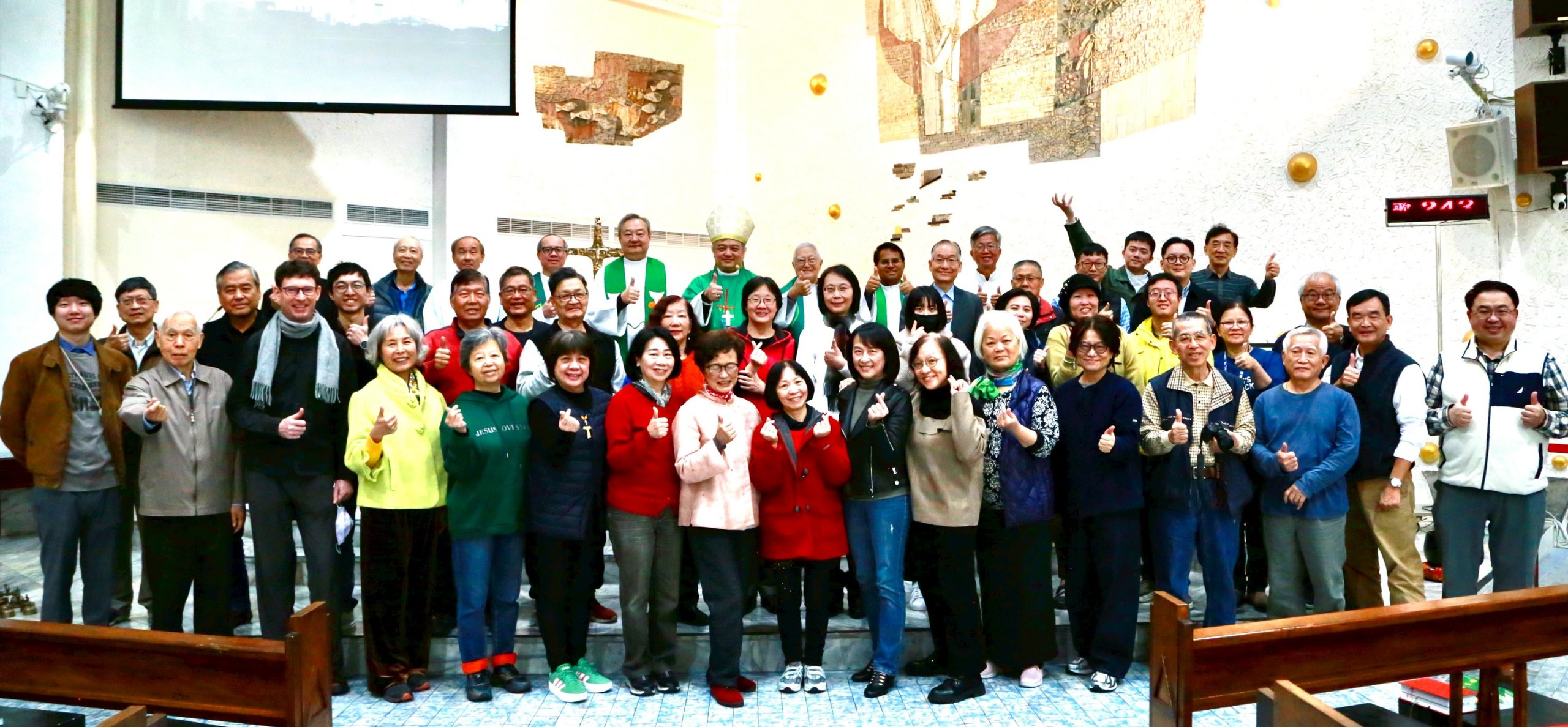 今年1月15日,天主教之聲傳播協會在新店大坪林聖三堂主辦天主教媒體感恩彌撒、分享會暨共融餐會。與會團體有天主教之聲台灣各分會、天主教真理電台、光啓社、台南教區傳媒資訊處、博愛基金會、台北總教區媒體組、天主教周報等單位近50人到場。當天適逢聖言會會祖——聖楊生神父逝世117周年的紀念日,因此堂區將會祖的聖像畫安置於聖所階梯前,供參禮者敬禮。